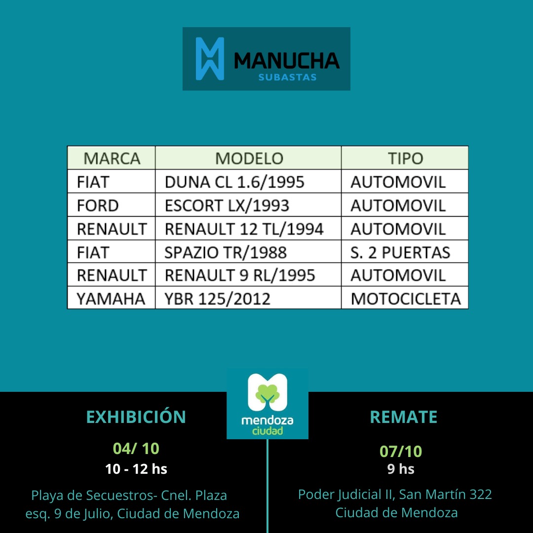 EXHIBICIÓN: 04 de octubre de 2024 de 10:00 a 12:00 hs. Playa de Secuestros- Cnel. Plaza esq. 9 de Julio, Ciudad de Mendoza.