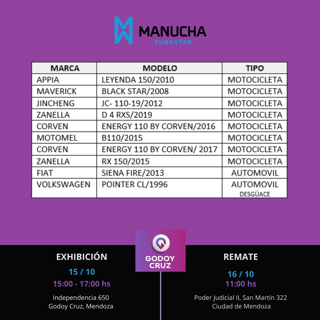 FECHA DE REMATE: 16 de octubre de 2024 a las 11:00 hs. Poder Judicial II- Av. San Martín 322, Ciudad de Mendoza.