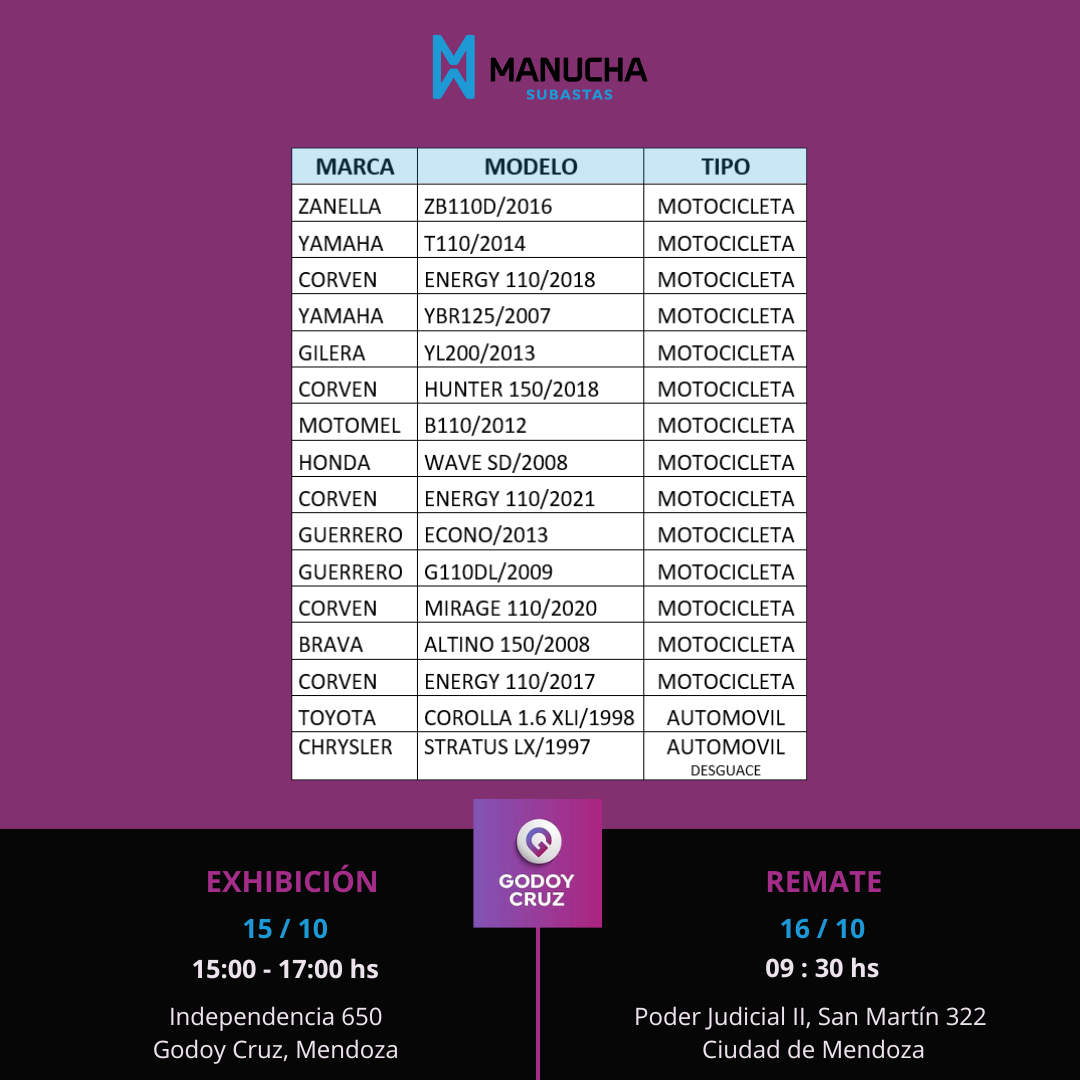FECHA DE REMATE: 16 de octubre de 2025 a las 09:30 hs. Poder Judicial II- Av. San Martín 322, Ciudad de Mendoza