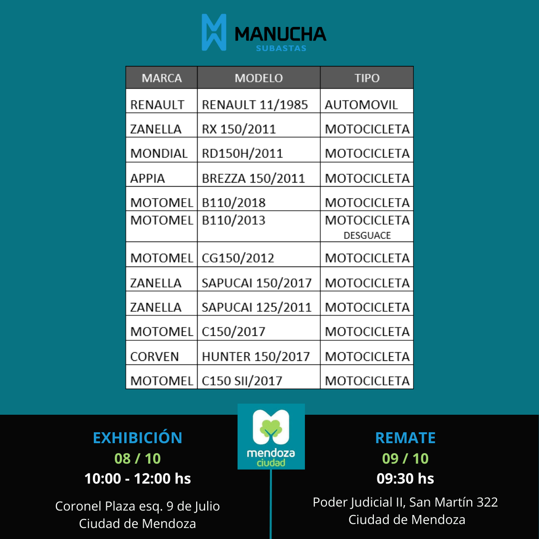 FECHA DE REMATE: 09 de octubre de 2025 a las 09:30 hs. Poder Judicial II- Av. San Martín 322, Ciudad de Mendoza.
